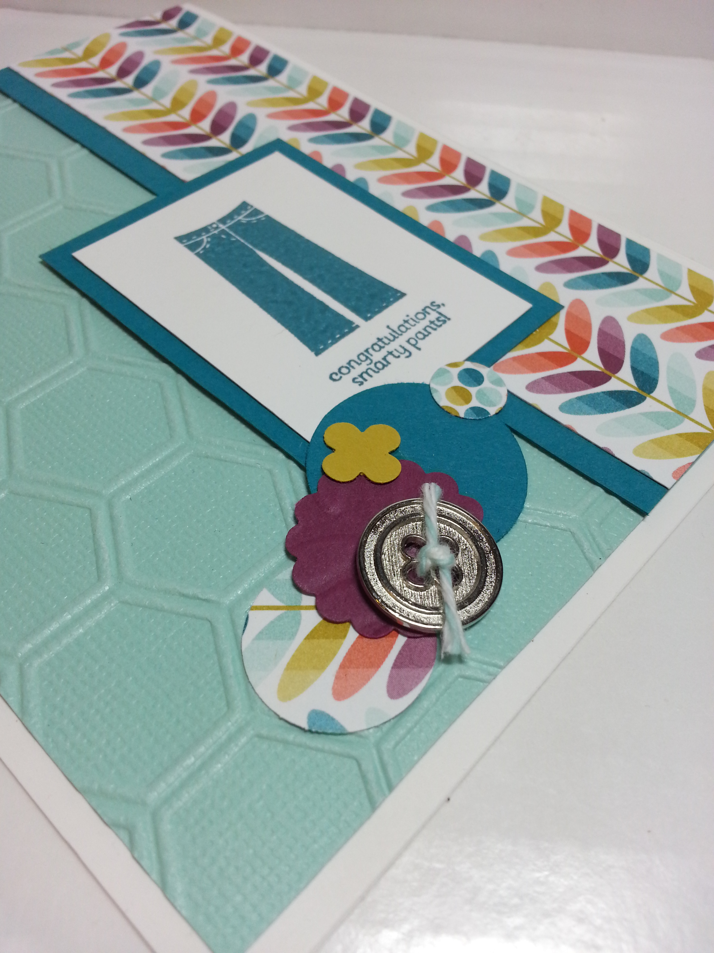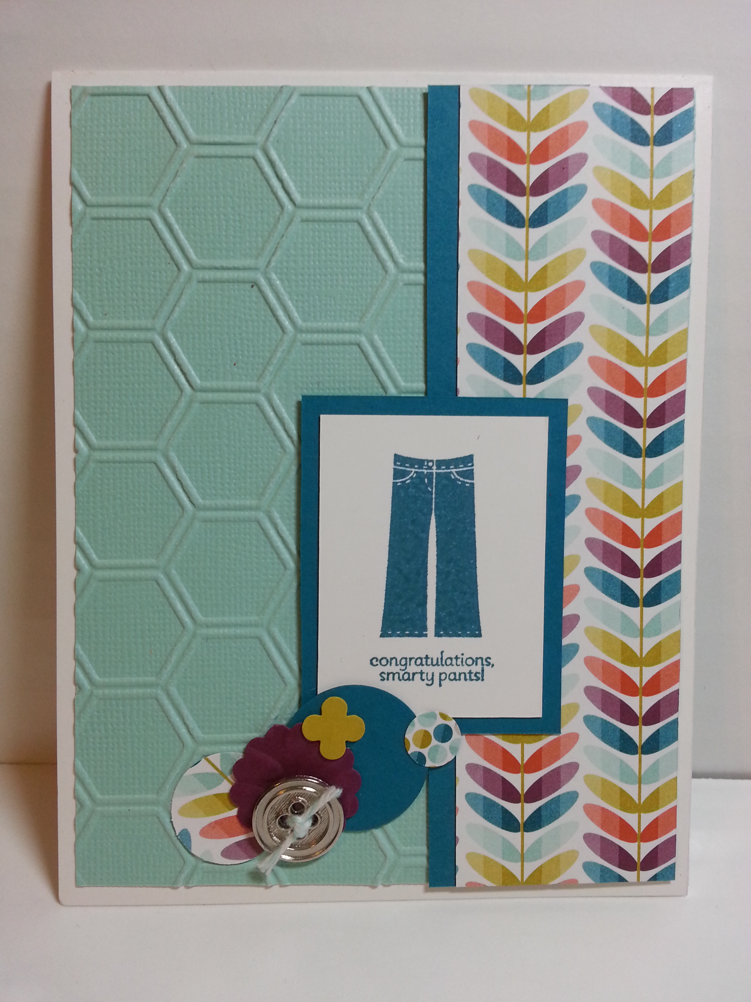 On this, I got out that honeycomb TIEF again!! And, used the Pool Party Co’ordinations paper. LOVE IT TOO. And, I’m getting back into embossing. I can’t figure out why I didn’t enjoy it. I always thought I didn’t like it. But, the SU embossing power melts so smooth… and FAST. And, the redesigned heat tool (new to this catalog year) WHISPERS compared to the others… (I think I was afraid to emboss cause I’d wake the kid…) Anyway…