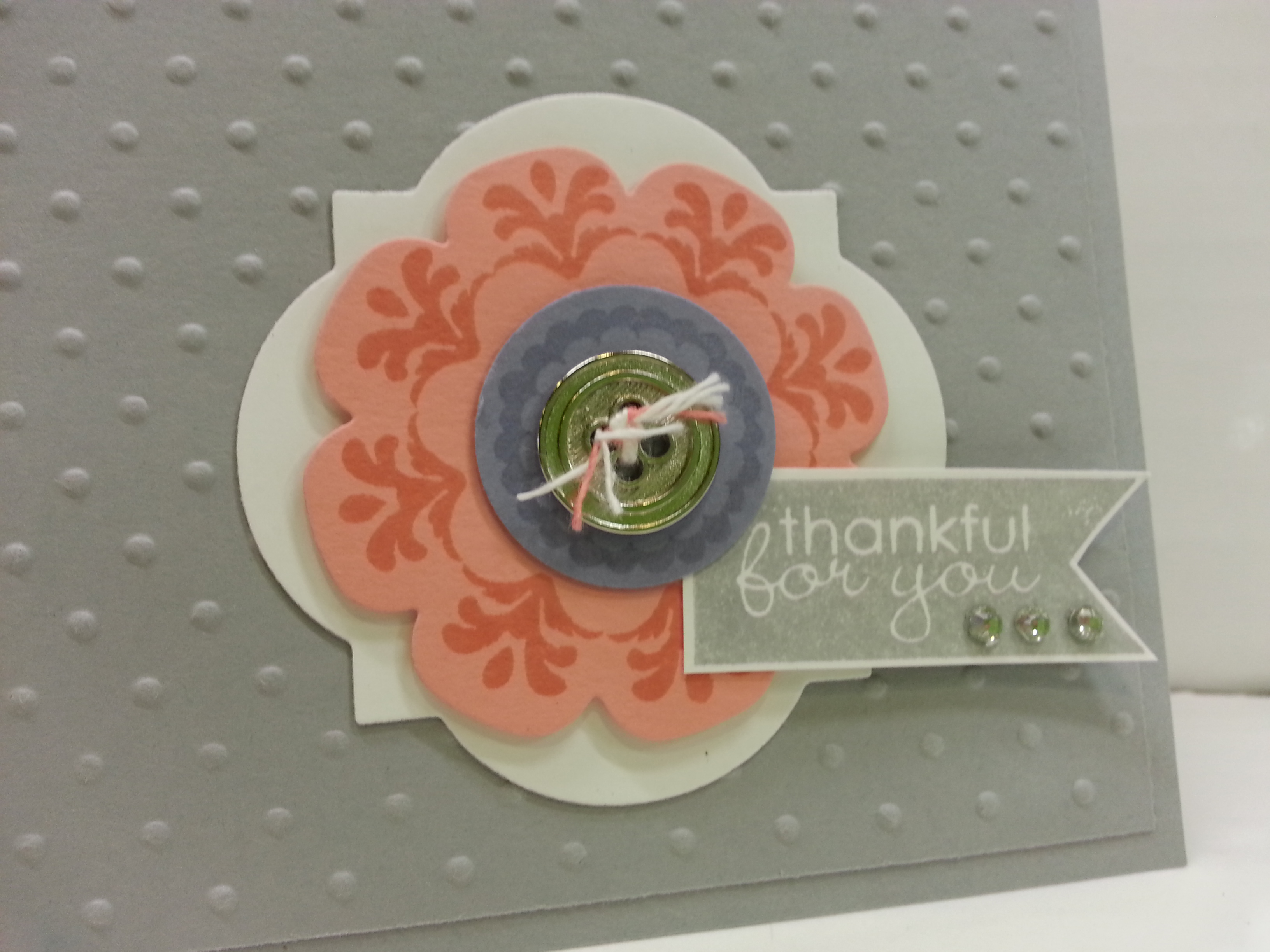 And, that sentiment is from the Hostess Set offerings as well, called Banner Greetings…..  Sorry, but the button is from the Spring Occasions Mini, which is no longer available.  But you could use any of our awesome new buttons…  I just had a bunch I needed to use up.  Cleaning out…