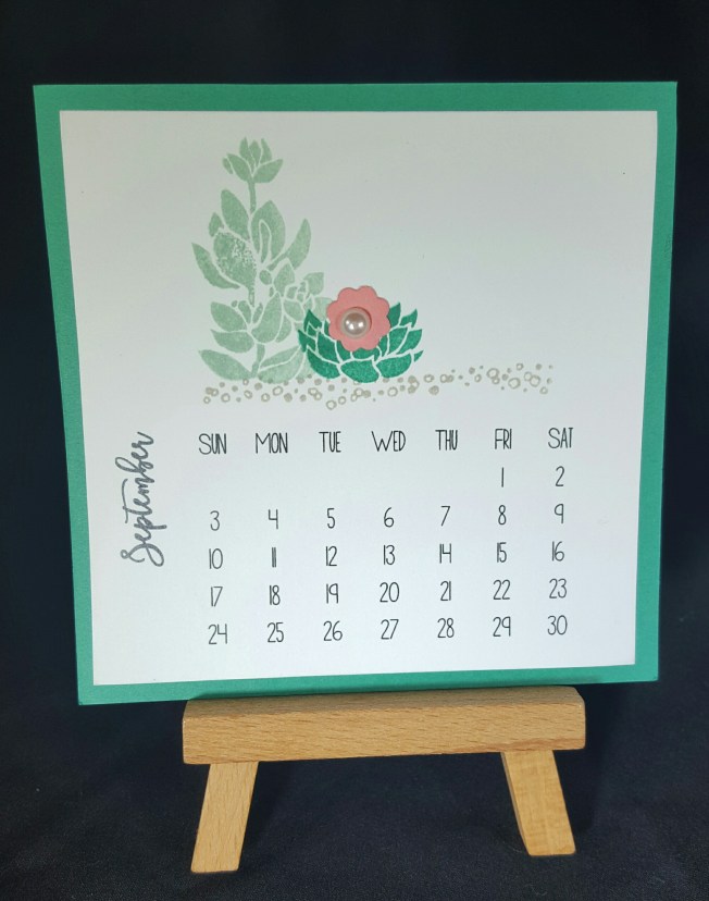 The colors here are so easy… Emerald envy is the darker green and the silvery-green is the mint macaroon (retired). The little flower punch (retired) is flirty flamingo.