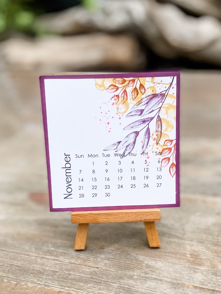 Forever Fern!! It is what we used for the cover of our calendar this year. This set is amazingly versatile. You can change up the colors and have a completely different feel. For this month, I used the blackberry Bliss, Cajun Craze, Bumblee, and Pumpkin Pie to create the bundle of fall stems.