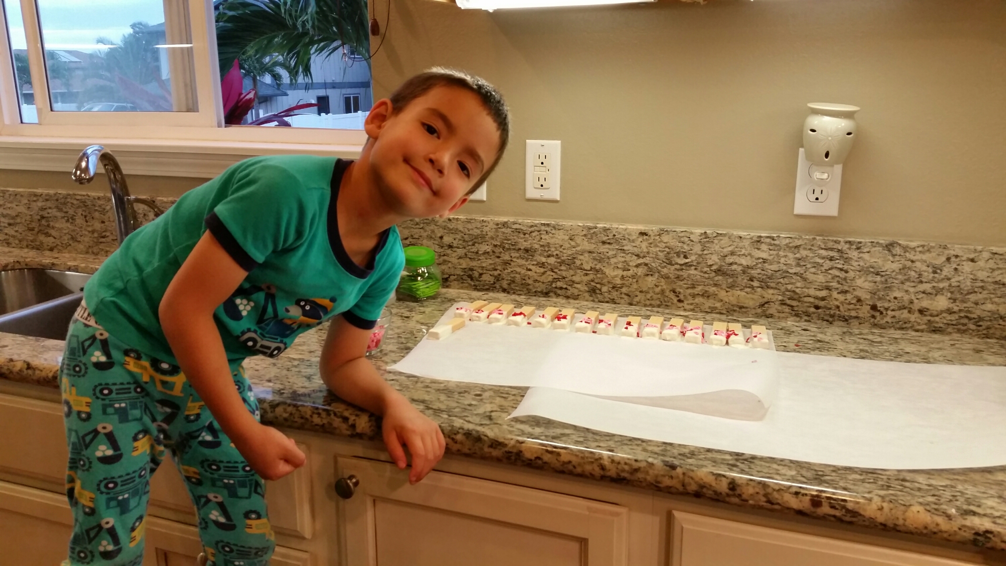 So, in prepararion, Isaac needed some treats for his classmates. And so we made some.