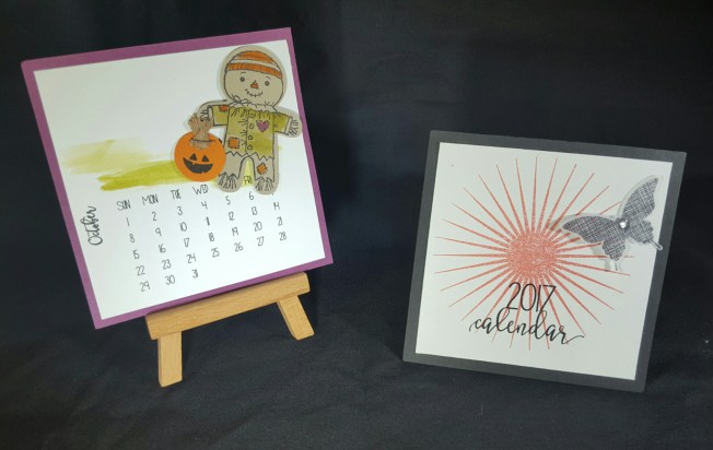 Isn’t he the cutest little scarecrow you’ve ever seen? This is from the Cookie Cutter Halloween stamp set (now retired). And, you just stamp the little guy on some crumb cake and give him a swish and a swoosh with the aqua painter and there you go! Little unscary scarecrow!